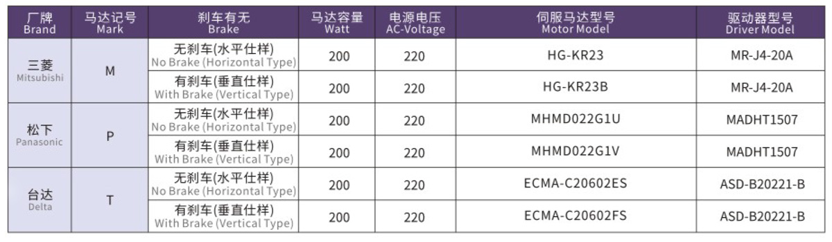 搭配伺服马达一览表